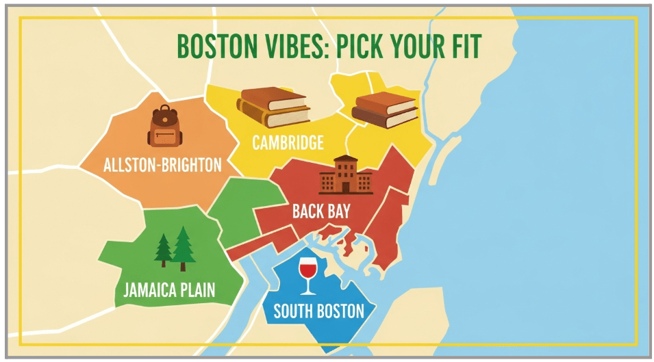 Choosing the right neighborhood can make or break your Boston experience. Here’s a snapshot of popular areas for newcomers:
